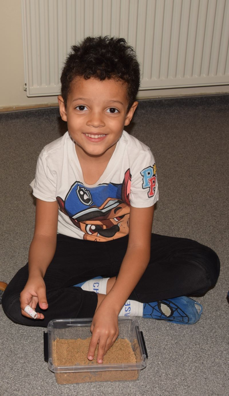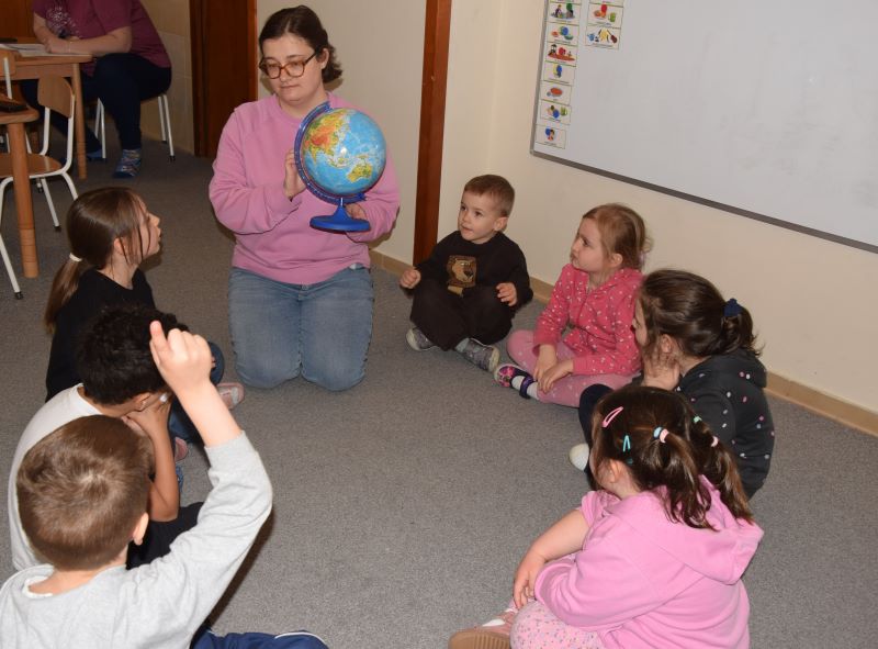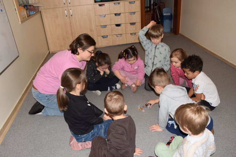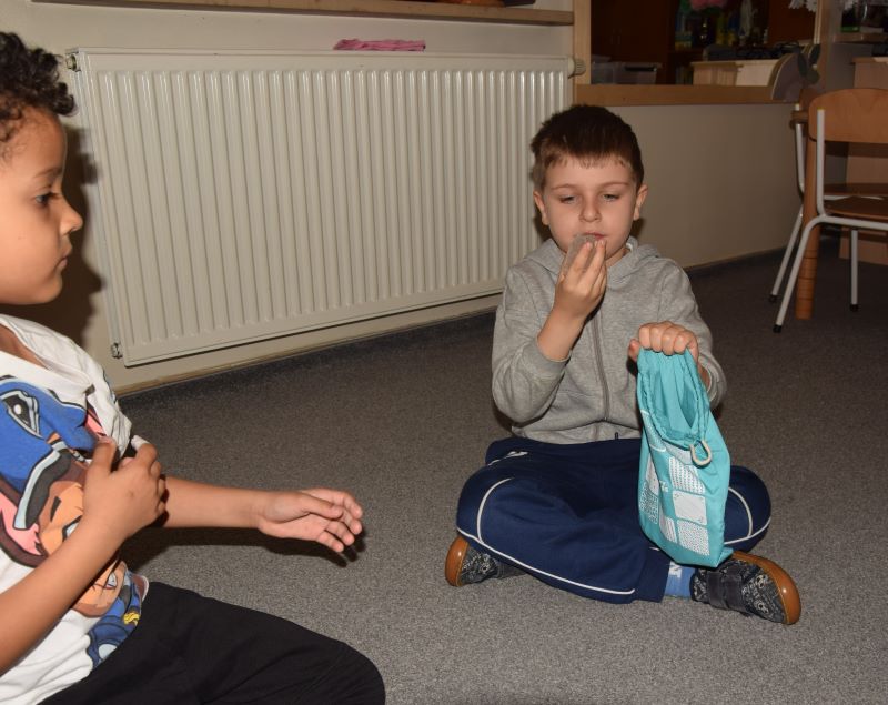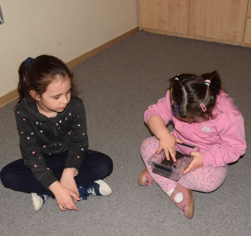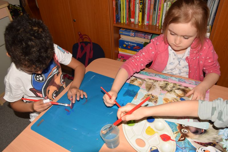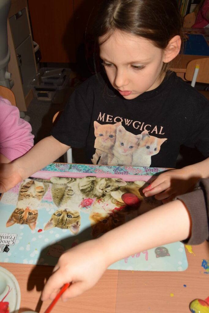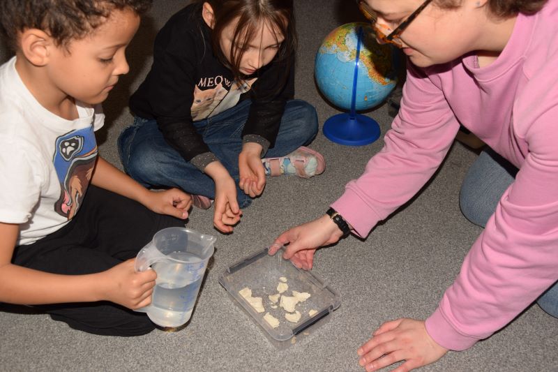 Tematem przewodnim obecnego tygodnia w grupie „Iskierek” są żywioły. Dziś poznawaliśmy, jakie skarby skrywa nasza planeta Ziemia. Dowiadywaliśmy się skąd pochodzi sól, węgiel, piasek, glina oraz jakie mają one zastosowanie w naszym życiu. Za pomocą zmysłu dotyku i wzroku poznawaliśmy ich faktury i opisywaliśmy nasze wrażenie po kontakcie z materiałami przyrodniczymi. Obcowaliśmy także ze szczególnymi skarbami naszej planety – kamieniami i minerałami. Z różnorodnych kamieni i kamyczków stworzyliśmy własne geometryczne mozaiki. Obserwowaliśmy także zjawisko luminescencji, czyli szczególną właściwość, jaką posiadają wybrane kamienie szlachetne. Na zakończenie zajęć każda „Iskierka” za pomocą farb ozdobiła swój własny, niepowtarzalny kamień.