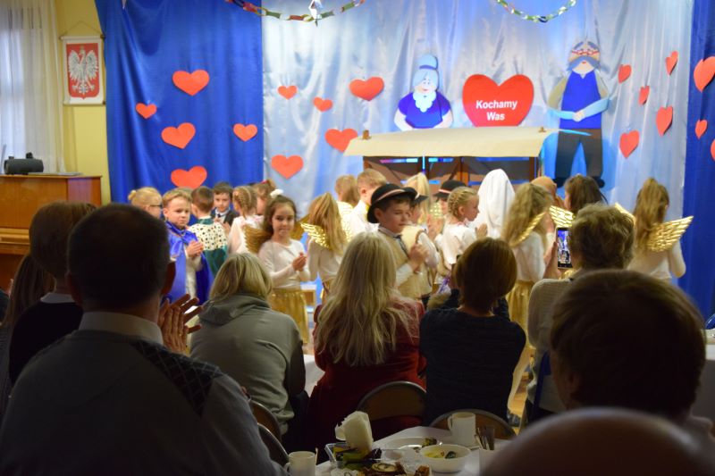 Z okazji obchodów Dnia Babci i Dziadka nasze najstarsze przedszkolaki zaprosiły swoich Dziadków do przedszkola. Choć od grudnia nie minęło wiele czasu, „Kamyczki” zaprezentowały nowe Jasełka. Dzieci były bardzo zaangażowane podczas przygotowań do przedstawienia. Występ „Kamyczków” spotkał się z ogromnym entuzjazmem licznie zgromadzonych Gości. W trakcie radosnego świętowania był czas na słodki poczęstunek, rozmowy, integrację i wspólne kolędowanie.