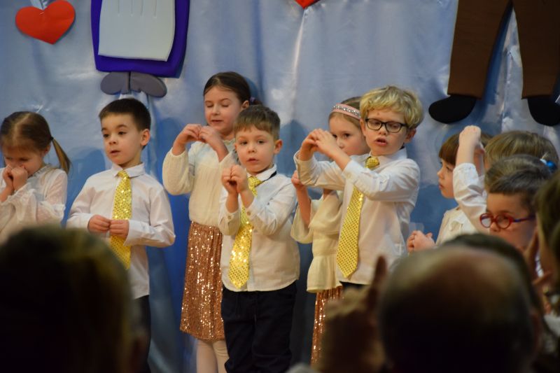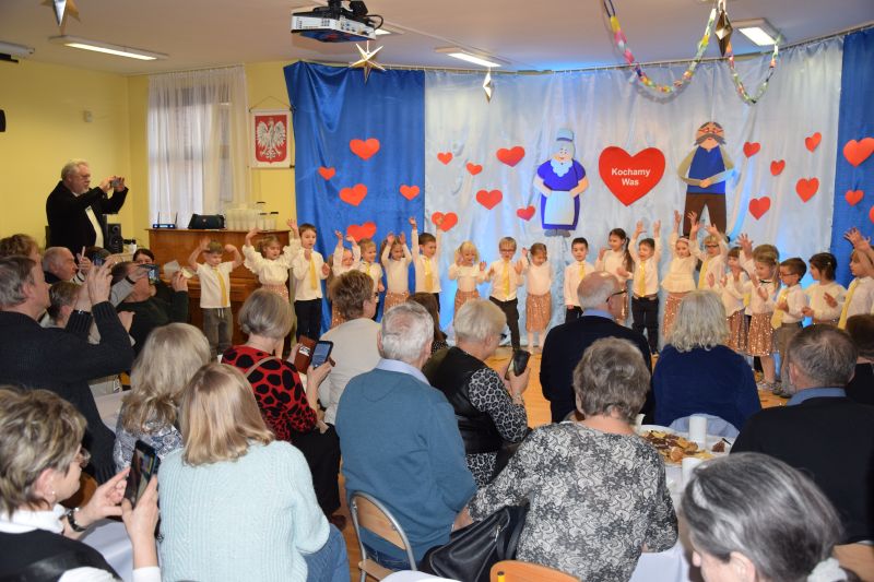Z okazji obchodów Dnia Babci i Dziadka „Kropelki dobra” wystąpiły dla swoich Dziadków prezentując tematyczne wiersze i piosenki. Zaproszeni Goście licznie zjawili się by wspólnie świętować. Po przedstawieniu dzieci wręczyły Dziadkom upominki. Następnie przyszedł czas na wspólne kolędowanie. To był czas pełen uśmiechów, wzruszeń i radości.