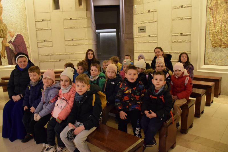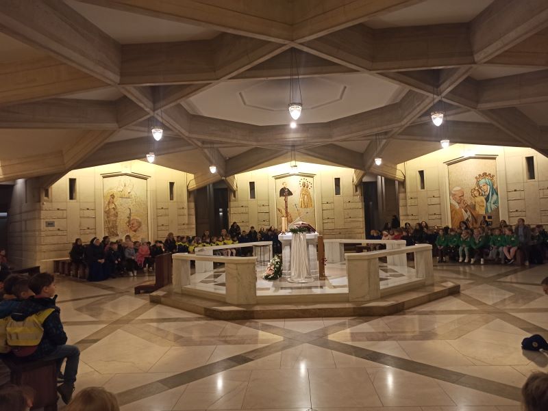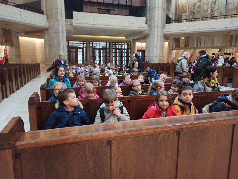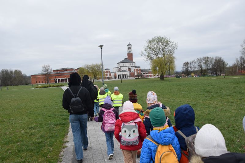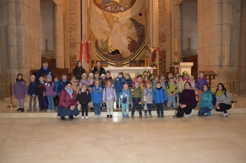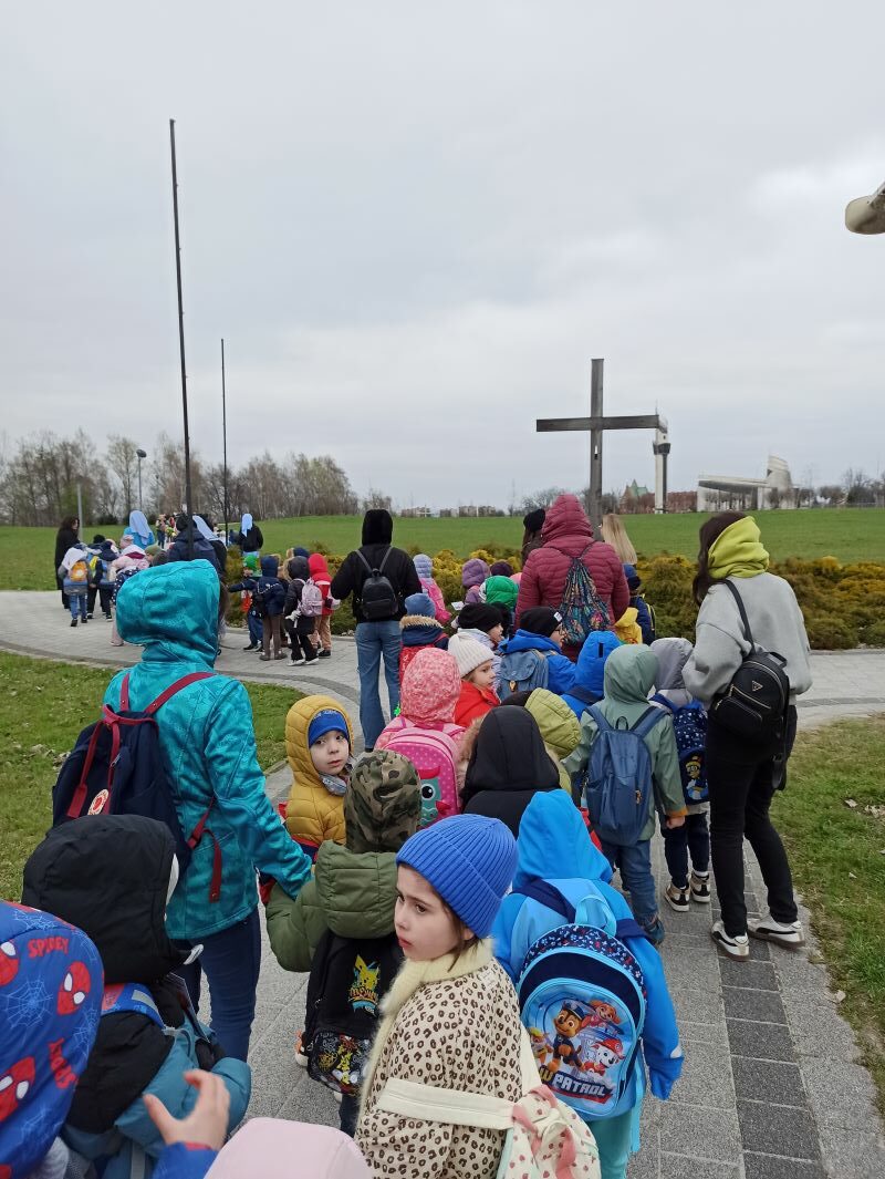 W szóstym dniu Nowenny do Miłosierdzia Bożego dzieci z grupy „Kamyczków” i „Kropelek” udały się z pielgrzymką do Sanktuarium Bożego Miłosierdzia w krakowskich Łagiewnikach. W pielgrzymce wzięły udział także dzieci z innych krakowskich przedszkoli. Przedszkolaki z ufnością zawierzyły swoje intencje, a także swoich najbliższych Bożemu Miłosierdziu modląc się Koronką do Bożego Miłosierdzia. Zgromadzone dzieci chwaliły Pana Boga wspólną modlitwą i śpiewem. Pielgrzymkowy czas był okazją do pogłębiania wiary i jej radosnego przeżywania, a także budowania relacji z drugim człowiekiem.