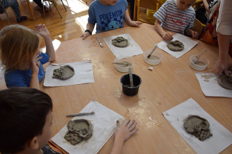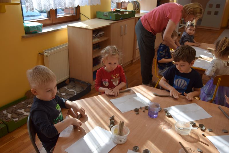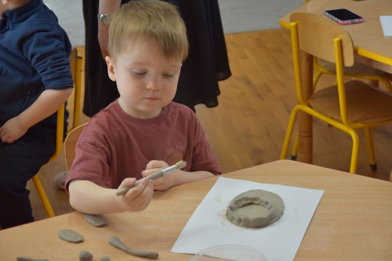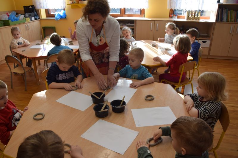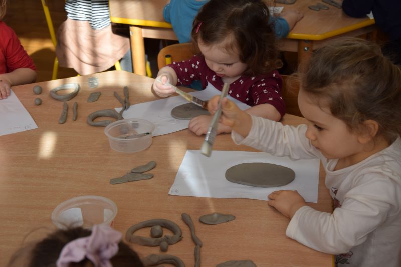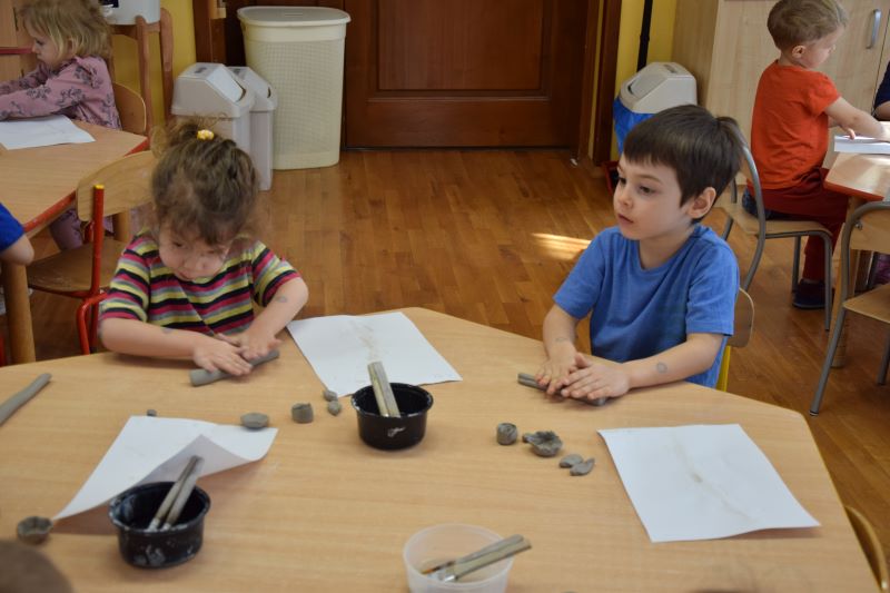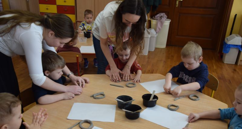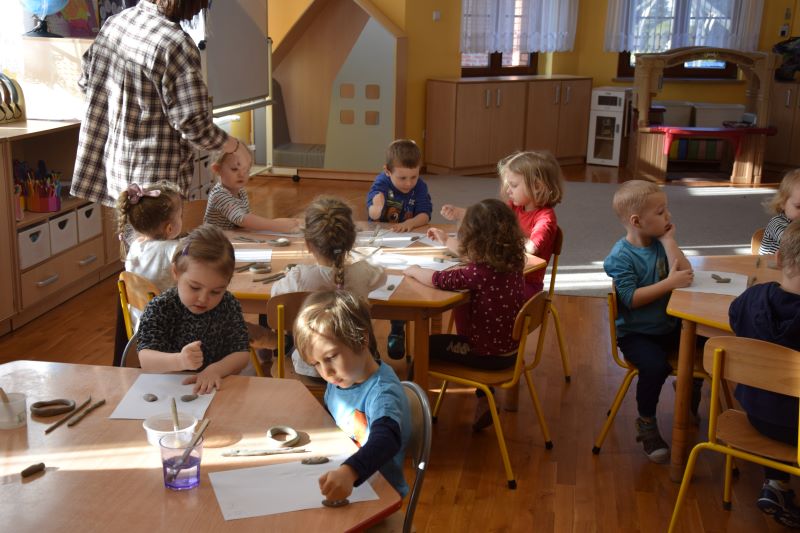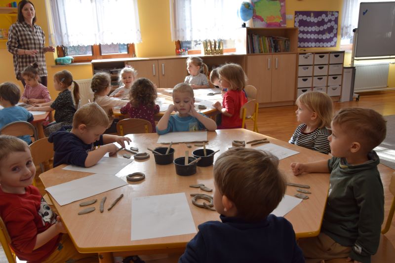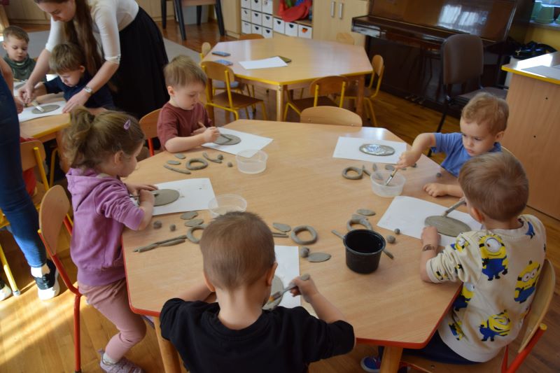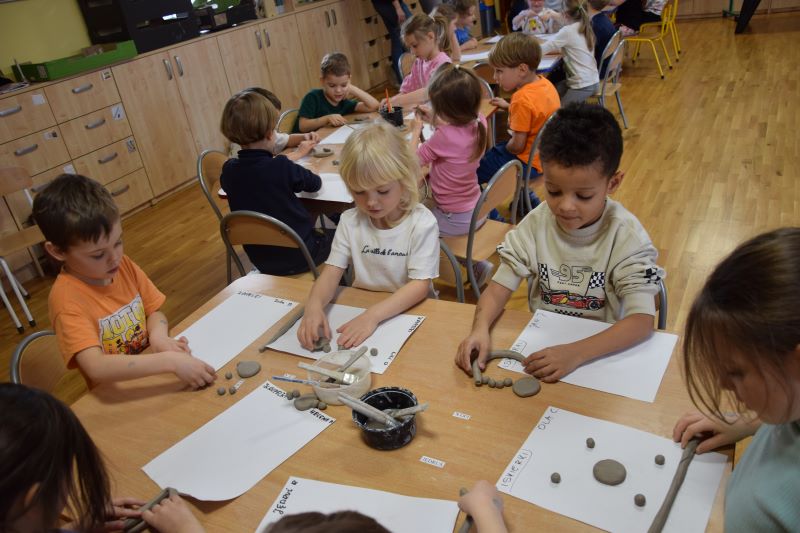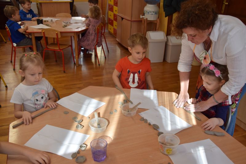 W naszym przedszkolu kolejny już raz odbyły się warsztaty ceramiczne. Przedszkolaki wykonały z gliny piękne kwiaty, koszyczki kwiatowe oraz kotki. Kontakt z gliną wpłynął na dzieci wyciszająco, a także usprawnił rozwój koncentracji uwagi. Podczas zajęć dzieci rozwijały swoją samodzielność i cierpliwość, a także doskonaliły sprawność motoryki małej.