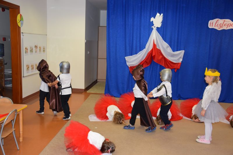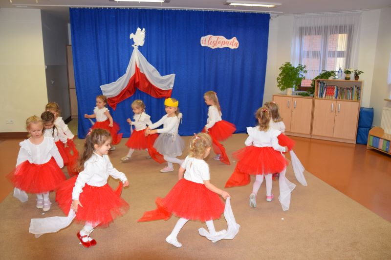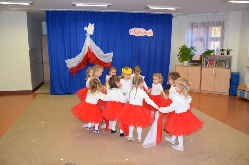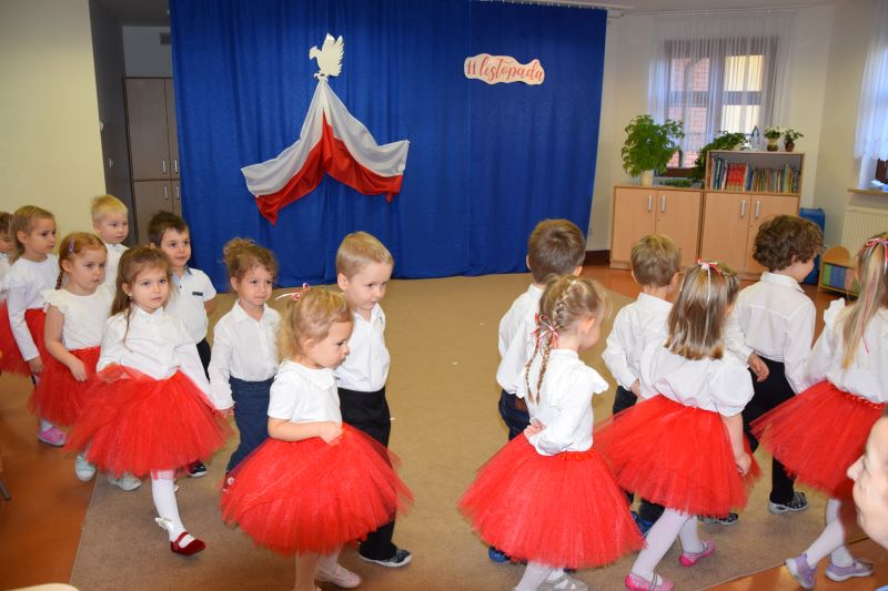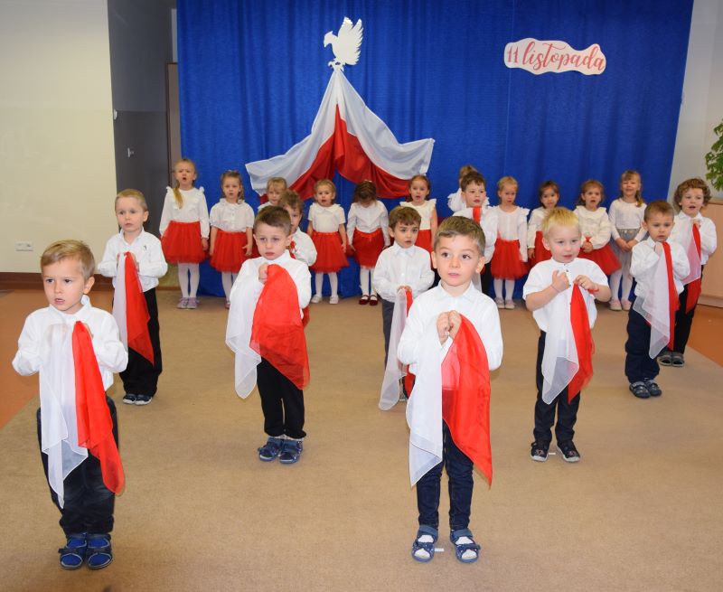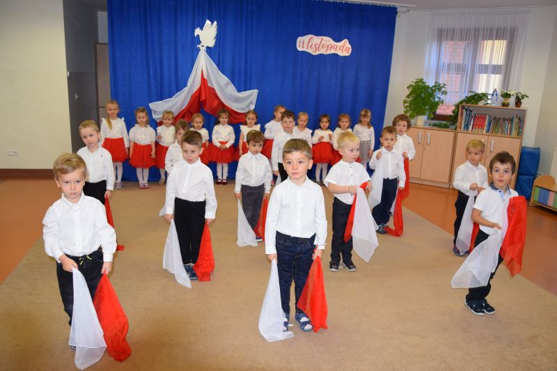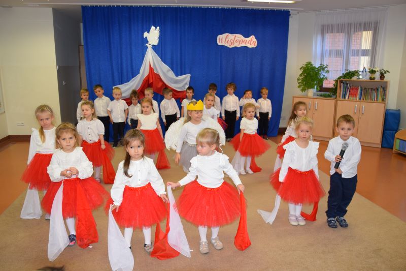 Perełki uczciły niepodległość Polski występem patriotycznym. Przedszkolaki z dumą odśpiewały Hymn Polski, zatańczyły poloneza, recytowały wiersze i śpiewały piosenki patriotyczne. Dzieci swoim występem przybliżyły dzieje Polski z czasów niewoli oraz zainscenizowały walkę Polaków o wolność Ojczyzny. Perełki ubrane w barwy narodowe stworzyły wyjątkowy i wzruszający nastrój.